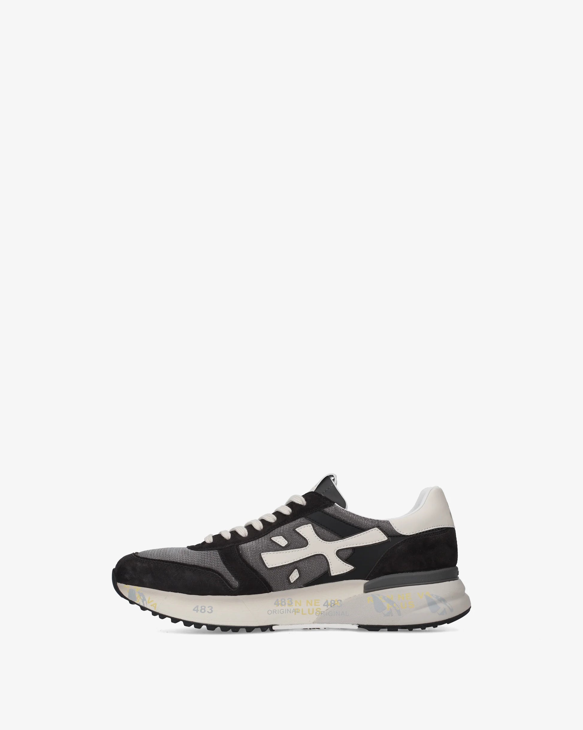 Un mix di materiali e pellami di qualità. La scarpa è realizzata in tonalità scure per uno stile casual. L'iconica silhouette è arrichita dal logo Premiata.